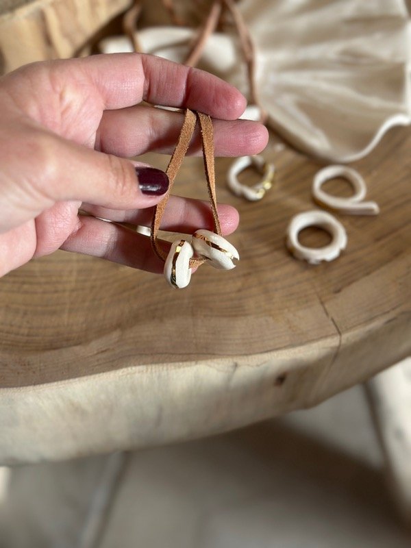 La pieza viene en una bolsita de lienzo hecha a mano para guardar y protegerla.